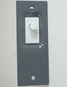 It consists of a push-button switch with a metal box and a cover plate.
